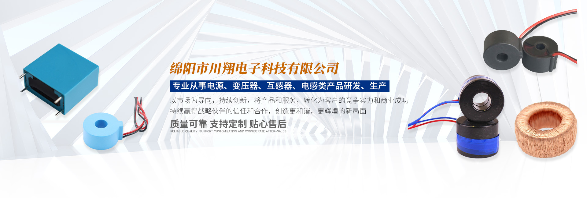 公司經營理念:以人為本,開拓創(chuàng)新,奉獻社會。 公司核心價值觀:持續(xù)穩(wěn)定的品質,快速靈活的反應,準確及時的交付,不斷創(chuàng)新的技術,公平誠信的道德,文明和諧的環(huán)境,有利市場的競爭。 公司愿景:力爭十年的時間,打造成國內一流的互感器、變壓器等電磁應用類器件的生產企業,為客戶創(chuàng)造更大的價值。